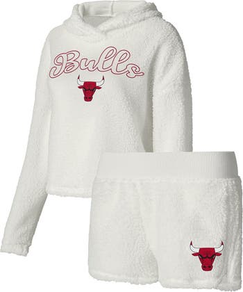 When it comes to relaxing, nobody does it better than you. Now up your game by wearing this Chicago Bulls Fluffy sleep set from College Concepts. It features a super-soft long sleeve hoodie T-shirt and shorts. Bold Chicago Bulls graphics adorn both the tee and shorts, so your devotion will follow you into dreamland easily.