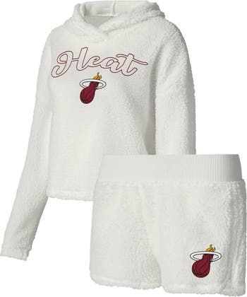 Women's College Concepts Cream Miami Heat Fluffy Long Sleeve Hoodie T-Shirt & Shorts Sleep Set