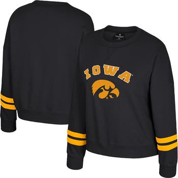 Show your devotion to the Iowa Hawkeyes in cozy style with this Splashy Crewneck Fleece Sweatshirt from Colosseum. Trendy dropped shoulders create a casual look, relaxed look, while the ribbed collar, cuffs, and waistband offer a secure fit. The embroidered team graphics combined with the cozy fleece lining make it perfect for showing your Iowa Hawkeyes spirit on cooler game days.