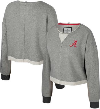 Stay cozy and show your Alabama Crimson Tide pride with this Colosseum Magnum Scoop Neck Cropped Pullover Sweatshirt. Its relaxed fit and scoop neck offer a comfortable, flattering silhouette that pairs perfectly with high-waisted jeans or leggings. The embroidered team graphic on the left chest provides a subtle yet stylish display of your Alabama Crimson Tide pride, while the raw-edged detailing gives it a rugged finish.