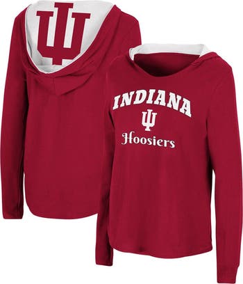 The Women's Colosseum Crimson Indiana Hoosiers Catalina Hoodie Long Sleeve T-Shirt is the perfect way to show your support for the Indiana Hoosiers. Made from soft cotton, this hoodie features a contrast-color hood lining and a hood without a drawstring for a comfortable fit. The rounded hem adds a touch of style, while the Indiana Hoosiers logo proudly displayed on the front shows your team spirit. Whether you're cheering on the Hoosiers at the game or just relaxing at home, this hoodie is sure to keep you warm and comfortable.