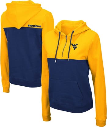 The Women's Colosseum Gold/Navy West Virginia Mountaineers Aidan Lightweight Half-Zip Hoodie is the perfect way to show your support for the Mountaineers. Made from a soft cotton and polyester blend, this lightweight hoodie is ideal for mild temperatures. The front and back yoke seams add a stylish touch, while the front pouch pocket is perfect for storing essentials. The screen-printed graphics proudly display your West Virginia Mountaineers pride.