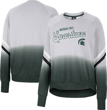 The Women's Colosseum Gray Michigan State Spartans Cue Cards Dip-Dye Raglan Pullover Sweatshirt is the perfect way to show your support for the Michigan State Spartans. This midweight sweatshirt is made of a soft cotton and polyester blend, making it comfortable to wear all day long. The dip-dye design and raglan sleeves give it a stylish look, while the screen print graphics proudly display your Spartans pride. Whether you're cheering on the team at the game or just relaxing at home, this sweatshirt is sure to keep you warm and comfortable.