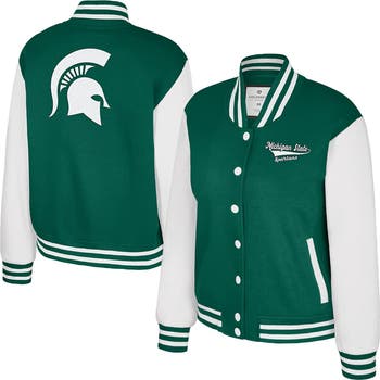 Add some retro flair to your Michigan State Spartans fan wardrobe with this French Baguette Full Snap Fleece Jacket from Colosseum. This jacket is made with heavyweight fleece to help you stay warm when the temperatures fall. Plus, the embroidered team name on the front and chenille and felt appliqu logo on the back make it clear you're cheering for the Michigan State Spartans.