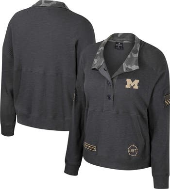 Support your Michigan Wolverines in a meaningful way with this Payback Henley Thermal sweatshirt from Colosseum. Its waffle-knit fabric features the Michigan Wolverines logo embroidered to match the OHT Military Appreciation graphics. A traditional pouch pocket keeps small items within easy reach.