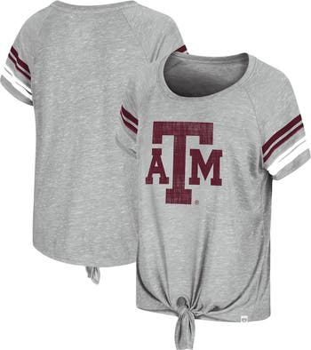 Look fashionable on Texas A&M Aggies game day in this Boo You Knotted T-shirt from Colosseum. It features printed Texas A&M Aggies graphics accentuated by the stripes in coordinating team colors and a chic tie detail in the front. Plus, raglan sleeves provide a little extra room for more comfortable movement.