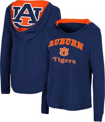 The Women's Colosseum Navy Auburn Tigers Catalina Hoodie Long Sleeve T-Shirt is the perfect way to show your support for the Auburn Tigers. With its contrast-color hood lining and rounded hem, this hoodie is both stylish and comfortable. The hood without a drawstring provides a clean and modern look, while the custom Auburn Tigers graphics proudly display your team spirit. Whether you're cheering on the Tigers at the game or just relaxing at home, this hoodie is sure to keep you warm and comfortable.