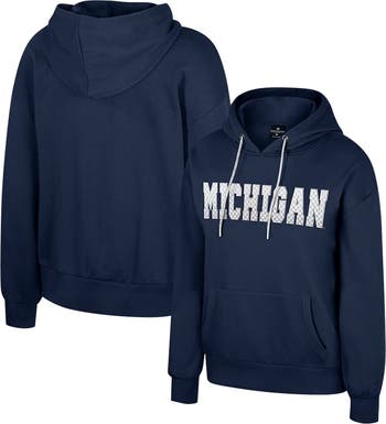 Women's Colosseum Navy Michigan Wolverines Reflection Rhinestone Drawcord Pullover Hoodie