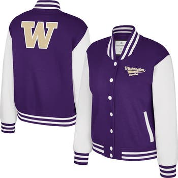 Add some retro flair to your Washington Huskies fan wardrobe with this French Baguette Full Snap Fleece Jacket from Colosseum. This jacket is made with heavyweight fleece to help you stay warm when the temperatures fall. Plus, the embroidered team name on the front and chenille and felt appliqu logo on the back make it clear you're cheering for the Washington Huskies.