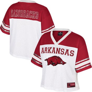Embrace your Arkansas Razorbacks spirit in style with this Treasure Cropped Football Jersey from Colosseum. This cropped jersey features a trendy, game-day-ready look with its mesh fabric and contrast-color accents. The foil screen print Arkansas Razorbacks name and logo boldly displayed on the chest and back leave no doubt as to where your collegiate loyalty lies.