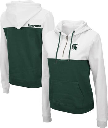 Women's Colosseum White/Green Michigan State Spartans Aidan Lightweight Half-Zip Hoodie