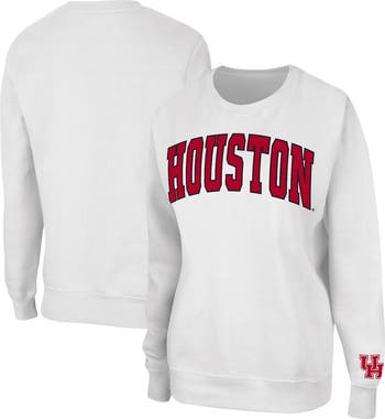 The Women's Colosseum White Houston Cougars Campanile Pullover Sweatshirt is the perfect way to show your support for the Houston Cougars. Made from a soft cotton and polyester blend, this midweight sweatshirt features a fleece lining for added warmth during chilly game days. Embroidered fabric applique and screen print graphics proudly display your Houston Cougars pride. Whether you're cheering from the stands or simply showing your support, this sweatshirt is the perfect way to represent the Houston Cougars in style.