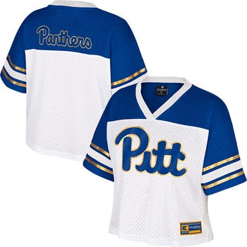 Embrace your Pitt Panthers spirit in style with this Treasure Cropped Football Jersey from Colosseum. This cropped jersey features a trendy, game-day-ready look with its mesh fabric and contrast-color accents. The foil screen print Pitt Panthers name and logo boldly displayed on the chest and back leave no doubt as to where your collegiate loyalty lies.