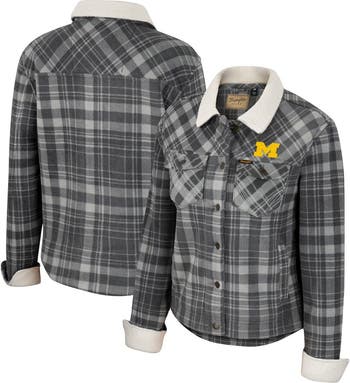 Elevate the look and feel of your Michigan Wolverines outerwear with this versatile button-up jacket from Colosseum x Wrangler. Its polar fleece fabric in a plaid design delivers cozy warmth, breathability and extra softness. An understated Michigan Wolverines logo perfectly complements the charming style.
