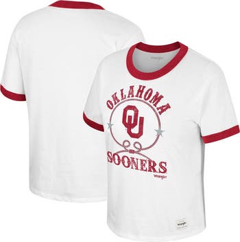 Women's Colosseum x Wrangler White Oklahoma Sooners Freehand Ringer T-Shirt