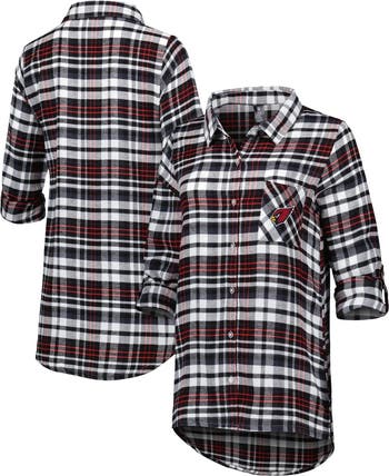 Even when you're dreaming, you can show off your unwavering Arizona Cardinals fandom with this Maintstay full-button nightshirt from Concepts Sport. It features the team logo embroidered on the chest and a woven plaid pattern that is comprised of their iconic colors. Pin-up sleeves and a rounded droptail hem make this Arizona Cardinals top great for dozing off in style.