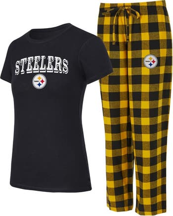 Women's Concepts Sport Black/Gold Pittsburgh Steelers Plus Avondale T-Shirt & Pants Flannel PJ Set