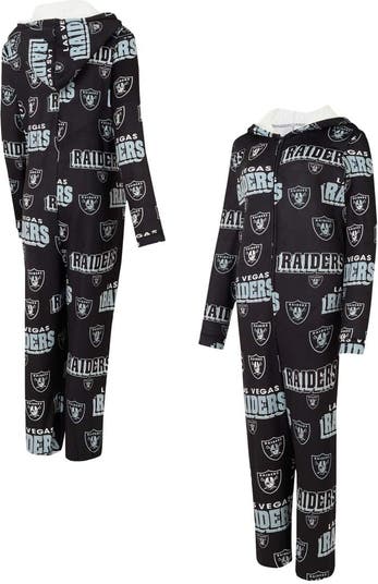 Women's Concepts Sport Black Las Vegas Raiders Roadway Allover Print Microfleece Full-Zip Union Suit