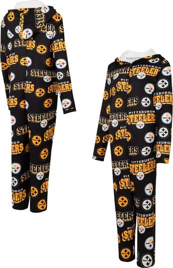 Show off your Pittsburgh Steelers pride in ultimate comfort with the Concepts Sport Roadway Allover Print Microfleece Full-Zip Union Suit. It's crafted from ultra-soft microfleece fabric, making it perfect for cozy nights in or cheering on your favorite team. The all-over sublimated graphics allow for intricate details and vibrant colors, showcasing your Pittsburgh Steelers pride in style.