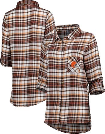 Women's Concepts Sport Brown Cleveland Browns Mainstay Plaid Full-Button Long Sleeve Nightshirt