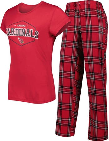 Relax and enjoy a great Arizona Cardinals game from home with this Concepts Sport Badge sleep set. It includes a crew neck T-shirt with classic Arizona Cardinals graphics and bottoms decorated in an eye-catching plaid pattern. Super-soft material provides a comfortable feel from kickoff to the final whistle.