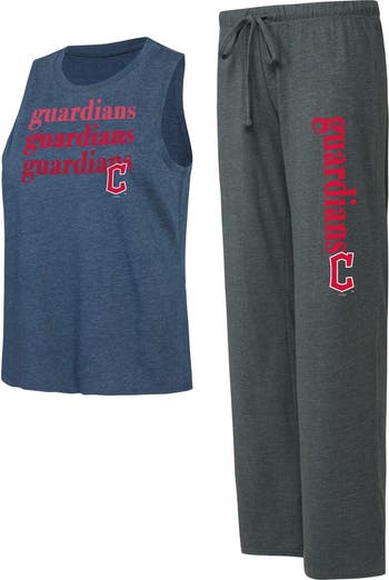 Before the next Cleveland Guardians game day, be sure that you're well rested by sporting this Meter muscle tank top and pants set from Concepts Sport. The top features recognizable team graphics across the front, while the bottoms display a complementary Cleveland Guardians graphic on the left leg. Thanks to the elastic waistband and cozy, stretchable fabric, you'll be able to enjoy a comfortable fit all night long.
