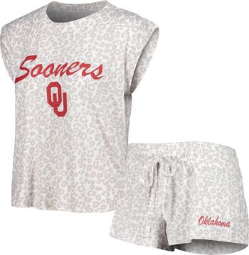 Slumber on the wild side in this Montana sleep set from Concepts Sport. It features Oklahoma Sooners graphics accentuated by the animal print all over the T-shirt and shorts. An adjustable waistband lets you customize the fit to make these Oklahoma Sooners pajamas even more comfortable.