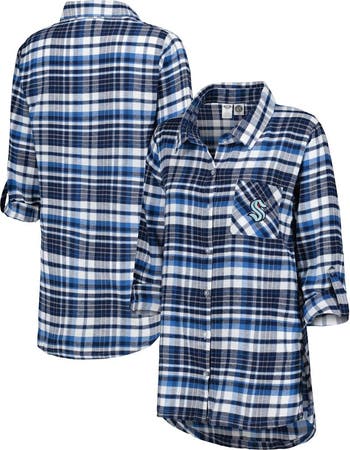 Women's Concepts Sport Deep Sea Blue Seattle Kraken Mainstay Flannel Full-Button Long Sleeve Nightshirt