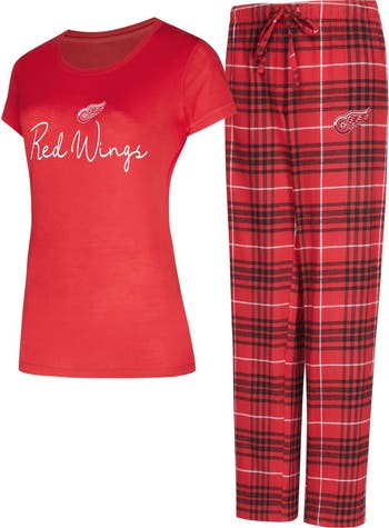 Dress for a restful night's sleep in this Detroit Red Wings Vector T-Shirt & Pants Sleep Set by Concepts Sport. It features team details printed across the shirt's front and a classic plaid pattern that accentuates the Detroit Red Wings logo embroidered on the left leg. Made from a blend of soft and breathable fabrics, this sleep set provides a comfortable feel all night.