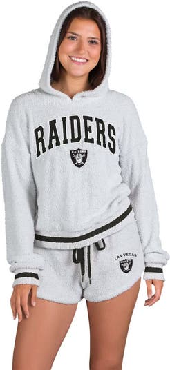 Stay comfortable and stylish while showing your Las Vegas Raiders pride with this Whitley Long Sleeve Hoodie Top & Shorts Set from Concepts Sport. This stylish set includes a long sleeve hoodie top and matching shorts, allowing you to showcase your Las Vegas Raiders pride in ultimate comfort. The hoodie features rib-knit cuffs and hem for a snug fit, while the shorts have an elastic waistband with a drawstring for a personalized feel. This set is perfect for lounging at home, catching some Z's or showing off your team spirit.