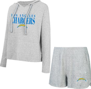 Stay comfy while you cheer on the Los Angeles Chargers with this Concepts Sport Juniper Long Sleeve Hoodie T-Shirt & Shorts Set. Made from super-soft knit fabric, this sleep set is designed with comfort in mind for those relaxing days or nights. The dropped shoulders create a relaxed fit, while the drawstring hood provides adjustable coverage and stylish detail.