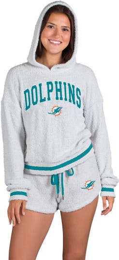 Stay comfortable and stylish while showing your Miami Dolphins pride with this Whitley Long Sleeve Hoodie Top & Shorts Set from Concepts Sport. This stylish set includes a long sleeve hoodie top and matching shorts, allowing you to showcase your Miami Dolphins pride in ultimate comfort. The hoodie features rib-knit cuffs and hem for a snug fit, while the shorts have an elastic waistband with a drawstring for a personalized feel. This set is perfect for lounging at home, catching some Z's or showing off your team spirit.