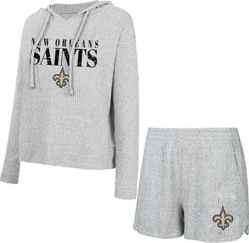 Stay cozy while repping your New Orleans Saints with this Concepts Sport Juniper Long Sleeve Hoodie T-Shirt & Shorts Set. Made from super-soft knit fabric, this set envelops you in maximum comfort for those relaxing nights in or casual days at home. The dropped shoulders create a relaxed fit, while the drawstring hood provides adjustable coverage for added warmth and style as you cheer on the New Orleans Saints.