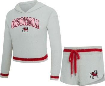 Stay comfortable and stylish while showing your Georgia Bulldogs pride with this Whitley Long Sleeve Hooded Top & Shorts Set from Concepts Sport. This stylish set includes a long sleeve hoodie and matching shorts, allowing you to showcase your team pride in ultra comfort. The hoodie features rib-knit cuffs and hem for a snug fit, while the shorts have an elastic waistband with a drawstring for a personalized fit and feel. It's perfect for lounging at home, catching some Z's, or showing off your team spirit.