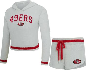Stay comfortable and stylish while showing your San Francisco 49ers pride with this Whitley Long Sleeve Hoodie Top & Shorts Set from Concepts Sport. This stylish set includes a long sleeve hoodie top and matching shorts, allowing you to showcase your San Francisco 49ers pride in ultimate comfort. The hoodie features rib-knit cuffs and hem for a snug fit, while the shorts have an elastic waistband with a drawstring for a personalized feel. This set is perfect for lounging at home, catching some Z's or showing off your team spirit.