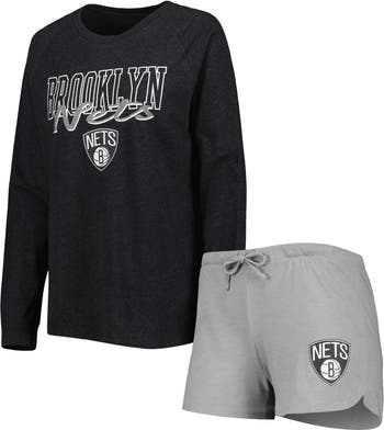 Women's Concepts Sport Heather Black/Heather Gray Brooklyn Nets Team Raglan Long Sleeve T-Shirt & Shorts Sleep Set
