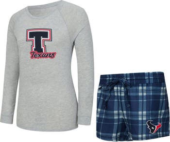 Women's Concepts Sport Heather Gray/Navy Houston Texans Regulate Plaid Long-Sleeve T-Shirt & Shorts Sleep Set