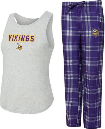 Show your Minnesota Vikings pride even during a relaxing evening at home with this Regulate Plaid Tank Top & Pants Sleep Set from Concepts Sport. Crafted from a soft blend of polyester and rayon, the tank top is designed for ultimate comfort and breathability, while the pants include an elastic waistband for a snug and secure fit. With the team logo printed on both items and the team name printed across the chest, this set lets you display your love for the Minnesota Vikings even in your downtime.