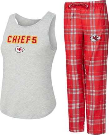 Show your Kansas City Chiefs pride even during a relaxing evening at home with this Regulate Plaid Tank Top & Pants Sleep Set from Concepts Sport. Crafted from a soft blend of polyester and rayon, the tank top is designed for ultimate comfort and breathability, while the pants include an elastic waistband for a snug and secure fit. With the team logo printed on both items and the team name printed across the chest, this set lets you display your love for the Kansas City Chiefs even in your downtime.