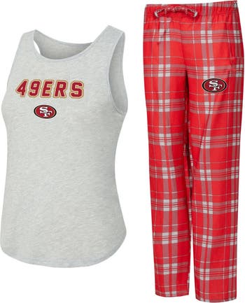 Show your San Francisco 49ers pride even during a relaxing evening at home with this Regulate Plaid Tank Top & Pants Sleep Set from Concepts Sport. Crafted from a soft blend of polyester and rayon, the tank top is designed for ultimate comfort and breathability, while the pants include an elastic waistband for a snug and secure fit. With the team logo printed on both items and the team name printed across the chest, this set lets you display your love for the San Francisco 49ers even in your downtime.