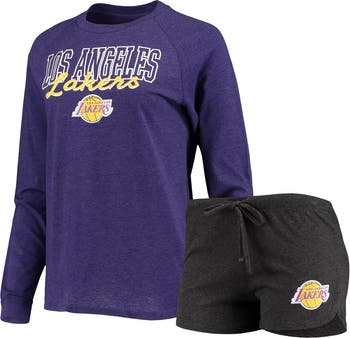 Rep your squad from sun up to sundown with this Los Angeles Lakers T-shirt and shorts sleep set from Concepts Sport. The bold Los Angeles Lakers graphics on each of these pieces make it easy to root for your favorites during the big game and long after the action comes to a close. Between the raglan sleeves on the top and the elastic waistband and side split hems on the bottoms, you can rest assured the comfortable fit and feel lasts throughout the day.