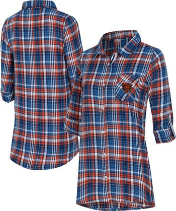 Enjoy ultimate comfort while representing the Chicago Bears with this Laney Plaid Tri-Blend Full Button Nightshirt from Concepts Sport. This nightshirt features a full-button front and pin-up sleeves, allowing you to customize your comfort and style. The woven plaid pattern and embroidered team graphics on the left chest pocket offer a stylish way to show off your Chicago Bears pride, whether you're winding down for the night or enjoying a lazy morning.