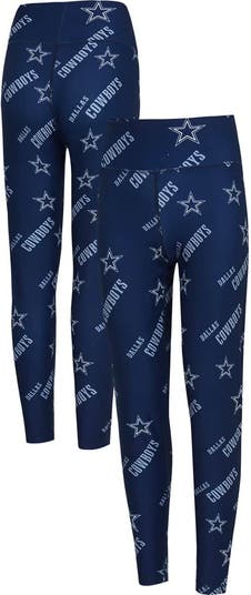 These Dallas Cowboys Breakthrough Allover Print Knit Leggings from Concepts Sport offer a comfortable way to represent your favorite team. The sublimated team name and logo in a repeating pattern create a bold statement of Cowboys fandom, while the flatlock stitching ensures both durability and a comfortable, chafe-free fit. With a focus on performance, these leggings are crafted from a blend of polyester and spandex, offering just the right amount of stretch and support for all your workouts.