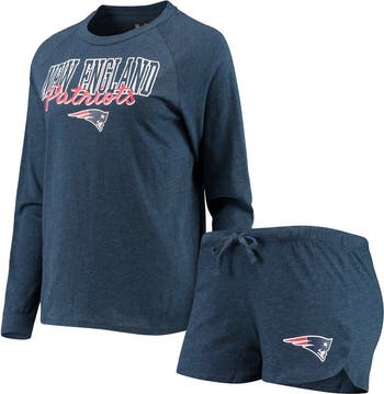 Soft and comfortable, this Concepts Sport set reps your New England Patriots spirit while you drift off to sleep. The top is crafted with raglan sleeves for better ease of moment, and the shorts include a drawstring waistband to find just the right fit. Both pieces of this Meter Knits sleep set feature bold New England Patriots graphics that show off your loyalty.