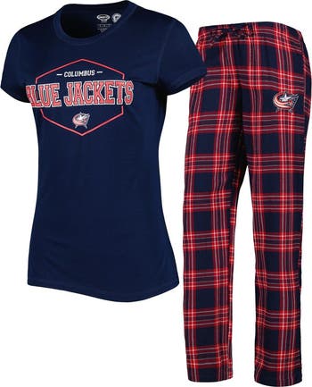 Rest comfortably and dream of your Columbus Blue Jackets winning the chip in this Badge sleep set by Concepts Sport. It includes a T-shirt with bold Columbus Blue Jackets graphics and pants in a matching plaid pattern. Soft, stretchy fabric supplies a super-comfortable feel so you can relax as you watch your favorites.