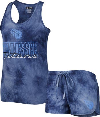 Perfect for nighttime games at home or sweet championship slumber, this Billboard racerback tank top and shorts sleep set by Concepts Sport is full of team spirit. It features distinct Tennessee Titans graphics on top of a stylish tie-dye pattern. A scoop neckline offers added appeal.
