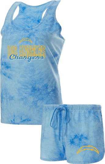 Perfect for nighttime games at home or sweet championship slumber, this Billboard racerback tank top and shorts sleep set by Concepts Sport is full of team spirit. It features distinct Los Angeles Chargers graphics on top of a stylish tie-dye pattern. A scoop neckline offers added appeal.