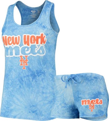 Kick back and enjoy watching your New York Mets in this Billboard set by Concepts Sport. It includes a tank top that promotes breathability and shorts with an adjustable waist. Bold New York Mets graphics are printed in a fun font on top of a striking tie-dye pattern for a stylish casual getup.