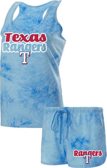 Kick back and enjoy watching your Texas Rangers in this Billboard set by Concepts Sport. It includes a tank top that promotes breathability and shorts with an adjustable waist. Bold Texas Rangers graphics are printed in a fun font on top of a striking tie-dye pattern for a stylish casual getup.