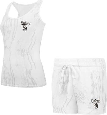 Rest up for the next San Diego Padres game in this comfy Concepts Sport Quartz sleep set. It includes a casual tank top with an eye-catching pattern and complementary shorts with an adjustable waistband. Noticeable San Diego Padres graphics on each piece complete this set for charming fan gear that's as stylish as it is comfy.
